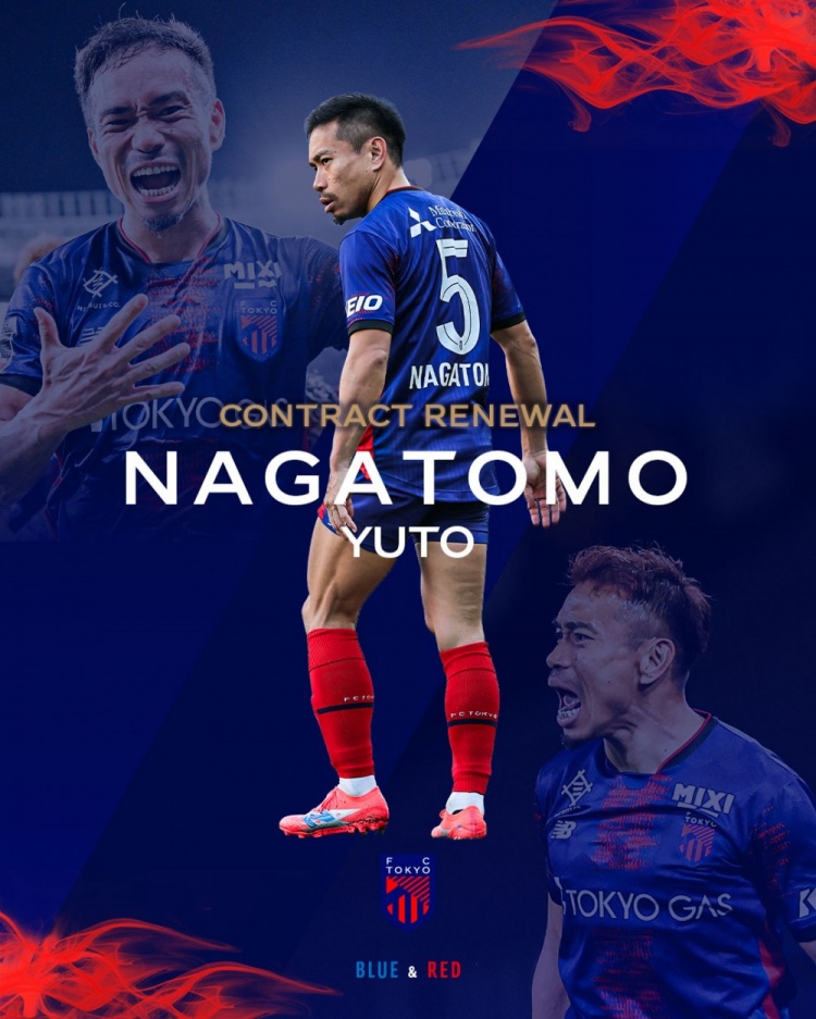12月30日讯 J1球队东京FC今日发布公告,宣布球队与39岁老将长友佑都完成续约。
